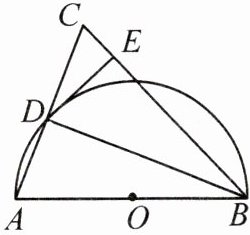 5. (2024·南宁银海三雅模拟)如图,在 $\triangle ABC$ 中,$BA = BC$,以 $AB$ 为直径作 $\odot O$,交 $AC$ 于点 $D$,连接 $DB$,过点 $D$ 作 $DE\perp BC$,垂足为 $E$。求证: