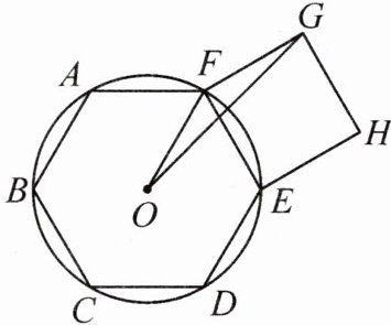 10. 如图,$\odot O$ 的半径为 $R$,六边形 $ABCDEF$ 是圆内接正六边形,四边形 $EFGH$ 是正方形。