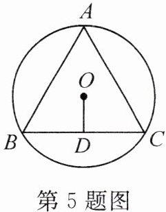 5. 如图,$\odot O$ 的内接正三角形 $ABC$ 的边心距 $OD$ 为 $2\mathrm{cm}$,则 $\odot O$ 的半径为