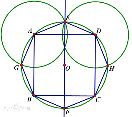如图 2,$AE$ 是 $\odot O$ 的直径,用直尺和圆规作 $\odot O$ 内接正八边形 $ABCDEFGH$(不写作法,保留作图痕迹)。