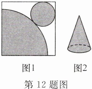 12. 如图,在纸上剪下一个圆形和一个扇形的纸片,使之恰好能围成一个圆锥模型。若圆的半径为 $1$,扇形的圆心角等于 $90^{\circ}$,则扇形的半径是(