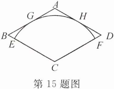 15. 如图,在菱形 $ABCD$ 中,$AB = 2\sqrt{3}$,$\angle C = 120^{\circ}$,以点 $C$ 为圆心的$\overset{\frown}{EF}$与 $AB$,$AD$ 分别相切于点 $G$,$H$,与 $BC$,$CD$ 分别相交于点 $E$,$F$。若用扇形 $CEF$ 作一个圆锥的侧面,则这个圆锥的高为