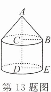 13. (新考向 真实情境)蒙古包可以近似地看作由圆锥和圆柱组成。如图所示的是一个蒙古包的示意图,底面圆的半径 $DE = 2\ m$,圆锥的高 $AC = 1.5\ m$,圆柱的高 $CD = 2.5\ m$,则下列说法错误的是(