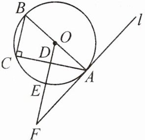 12. (2024·南宁天桃实验学校月考)如图,△ABC内接于⊙O,且AB为⊙O的直径,过点O作OE//BC,交⊙O于点E,交AC于点D。过点A作直线l交OE的延长线于点F,且∠F=∠BAC。