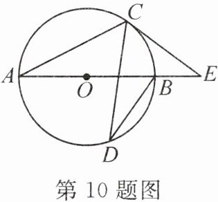 10. (2024·南宁三中月考)如图,线段AB是⊙O的直径,CD是⊙O的弦,过点C作⊙O的切线交AB的延长线于点E,∠E=40°,则∠CDB=(