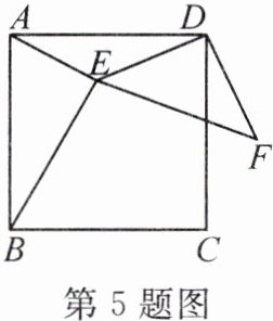 5. (2024·南宁四校联考期中)如图,E是边长为4的正方形ABCD内部一点,$\angle EAD = \angle EBA$,将DE按逆时针方向旋转$90^{\circ}$得到DF,连接EF,则EF的最小值为(