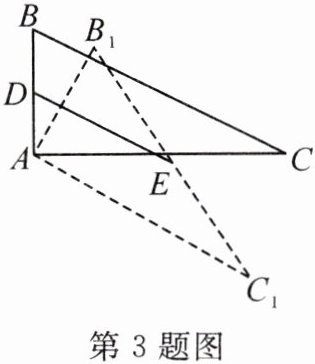 3. (2024·柳州期中)如图,在$Rt\triangle BAC$中,$\angle BAC = 90^{\circ}$,$AB = 4$,$BC = 9$,将$\triangle BAC$绕点A顺时针旋转得到$\triangle B_{1}AC_{1}$,取AB的中点D,$B_{1}C_{1}$的中点E,则在旋转过程中,线段ED的最小值为