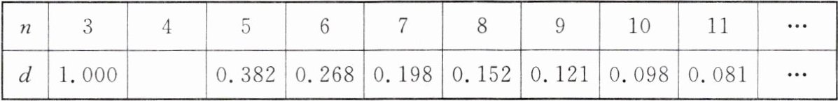 依次类推,当 n 取不同的值时,分别计算出 d 的值(结果精确到 0.001).具体数据如下表: