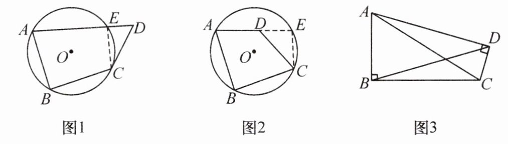 (2) 证明:延长AD与圆相交于点E,连接CE,则∠B + ∠E = 180°。