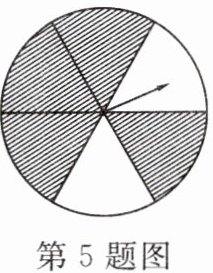5. 如图,一任意转动的转盘被均匀分成六份,当随意转动一次,停止后指针落在非阴影部分的可能性比指针落在阴影部分的可能性(