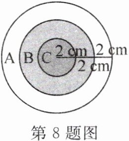 8. 在如图所示(A,B,C三个区域)的图形中随机撒一把豆子,豆子落在