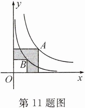 11. (2024·南宁三中模拟)如图,点 $ A $,$ B $ 分别在反比例函数 $ y = \frac{12}{x} $ 和 $ y = \frac{k}{x} $ 的图象上,分别过 $ A $,$ B $ 两点向 $ x $ 轴、$ y $ 轴作垂线,形成的阴影部分的面积为 7,则 $ k $ 的值为 (