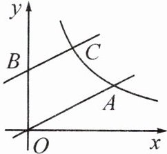 16. (2024·长春)如图,在平面直角坐标系中,$ O $ 是坐标原点,点 $ A(4,2) $ 在反比例函数 $ y = \frac{k}{x}(k > 0,x > 0) $ 的图象上. 将直线 $ OA $ 沿 $ y $ 轴向上平移,平移后的直线与 $ y $ 轴相交于点 $ B $,与反比例函数 $ y = \frac{k}{x}(k > 0,x > 0) $ 的图象相交于点 $ C $. 若 $ BC = \sqrt{5} $,则点 $ B $ 的坐标是 (