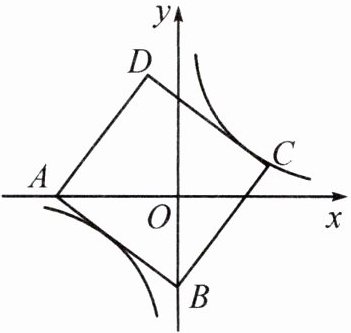 3. 如图,正方形 $ ABCD $ 的边长为 $ 5 $,点 $ A $ 的坐标为 $ (-4, 0) $,点 $ B $ 在 $ y $ 轴上。若反比例函数 $ y = \dfrac{k}{x}(k \neq 0) $ 的图象过点 $ C $,则该反比例函数的解析式为(