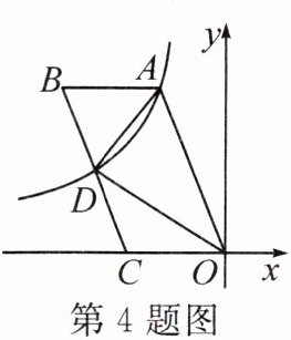 4. (2024·南宁天桃实验学校月考)如图,在平面直角坐标系中,平行四边形 $ OABC $ 的顶点 $ C $ 在 $ x $ 轴上,顶点 $ B $ 在第二象限,边 $ BC $ 的中点 $ D $ 的横坐标为