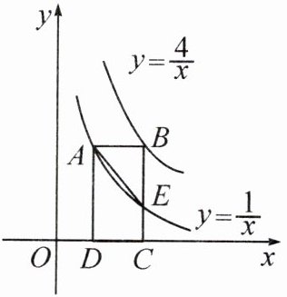 (2024·广西大学附中月考)如图,矩形 $ ABCD $ 的一边 $ CD $ 在 $ x $ 轴上,顶点 $ A $,$ B $ 分别落在双曲线 $ y = \frac{1}{x} $,$ y = \frac{4}{x} $ 上,边 $ BC $ 交 $ y = \frac{1}{x} $ 于点 $ E $,连接 $ AE $,则 $ \triangle ABE $ 的面积为
