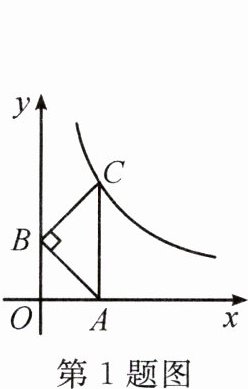 1. 如图,在平面直角坐标系中,等腰直角三角形 $ ABC $ 的顶点 $ A $,$ B $ 分别在 $ x $ 轴、$ y $ 轴的正半轴上,$ \angle ABC = 90^{\circ} $,$ CA \perp x $ 轴,点 $ C $ 在函数 $ y = \dfrac{k}{x}(x > 0) $ 的图象上。若 $ AB = 1 $,则 $ k $ 的值为