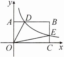 如图,在平面直角坐标系中,反比例函数$ y = \frac{k}{x}(x > 0) $的图象交矩形$ OABC $的边$ AB $于点$ D ,$交边$ BC $于点$ E ,$且$ BE = 2EC 。$若四边形$ ODBE $的面积为$ 6 ,$则$ k $的值为
