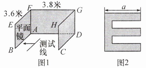 (1)如图,若将视力表挂在墙 CDGH 上,在墙 ABEF 上挂一面足够大的平面镜,根据平面镜成像原理可知:测试线应画在距离墙 ABEF