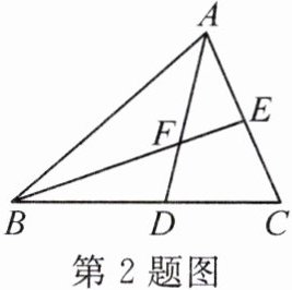 2. 如图,$BE$是$\triangle ABC$的中线,点$F$在$BE$上,延长$AF$交$BC$于点$D$.若$BF = 3EF$,则$\frac{BD}{DC}=$