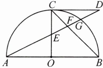 12. (2023·南宁西乡塘区模拟)如图,在以$AB$为直径的半圆中,点$O$为圆心,点$C$在圆上,过点$C$作$CD// AB$,且$CD = OB$。连接$AD$,分别交$OC$,$BC$于点$E$,$F$,与$\odot O$相交于点$G$。已知$\angle ABC = 45^{\circ}$。