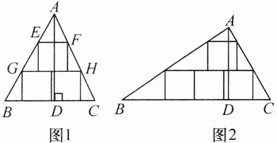 (2)如图 2,若这块锐角三角形 ABC 材料可以加工成图中所示的 4 个大小相同的正方形零件,则$\frac{AD}{BC}$的值为