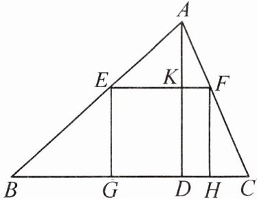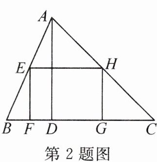 2. 如图,矩形 EFGH 内接于△ABC,且边 FG 落在 BC 上,AD ⊥ BC,BC = 3,AD = 2,EF = $\frac{2}{3}$EH,那么 EH 的长为