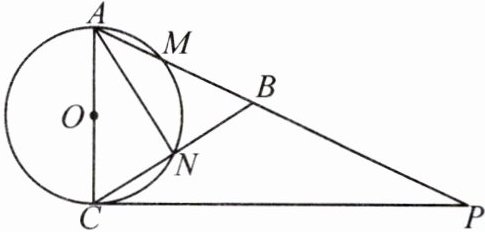 3. 如图,以△ABC 的边 AC 为直径的⊙O 交边 AB 于点 M,交边 BC 于点 N,连接 AN,过点 C 的切线交 AB 的延长线于点 P,∠BCP = ∠BAN。求证: