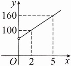 (1)设y与x之间的函数关系式为y=kx+b(k≠0).将(2,100),(5,160)代入y=kx+b,得$\begin{cases}2k+b=100,\\5k+b=160.\end{cases}$解得$\begin{cases}k=20,\\b=60.\end{cases}$