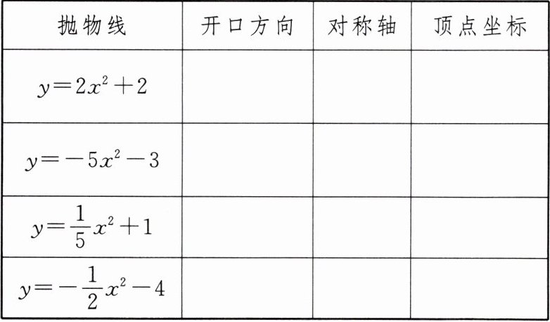 1. 填写下列抛物线的开口方向、对称轴及顶点坐标.