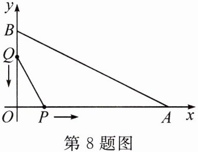 8. 如图,在平面直角坐标系中,$ OA = 12 $ cm,$ OB = 6 $ cm,点 $ P $ 从点 $ O $ 开始沿 $ OA $ 边向点 $ A $ 以 $ 1 $ cm/s 的速度移动,点 $ Q $ 从点 $ B $ 开始沿 $ BO $ 边向点 $ O $ 以 $ 2 $ cm/s 的速度移动,如果 $ P $,$ Q $ 同时出发,当其中一点到达终点时,另一点也随之停止运动. 设运动时间为 $ t $ s,$ \triangle POQ $ 的面积为 $ y $ cm²,当 $ \triangle POQ $ 的面积最大时,$ t $ 的值为