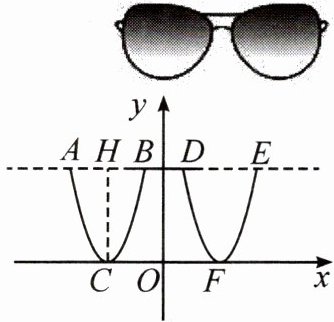 6. 新考向 真实情境 为了美观,在加工太阳镜时将下半部分轮廓制作成抛物线的形状(如图所示),对应的两条抛物线关于 $ y $ 轴对称, $ AE // x $ 轴, $ AB = 4 \, cm $,最低点 $ C $ 在 $ x $ 轴上,高 $ CH = 1 \, cm $, $ BD = 2 \, cm $,则右轮廓 $ DFE $ 所在抛物线的解析式为(