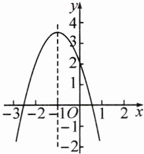 5. (2024·玉林北流市期中)二次函数 $ y = ax^2 + bx + c $ 的图象如图所示,对称轴是直线 $ x = - 1 $,有以下结论:① $ abc > 0 $;② $ 4ac < b^2 $;③ $ 2a + b = 0 $;④ $ a - b + c > 2 $.其中正确的个数是(