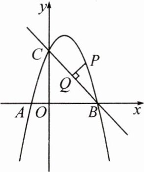 (2) 如图,点$P$是线段$BC$上方的抛物线上一动点,过点$P$作$PQ\perp BC$,垂足为$Q$,请问线段$PQ$是否存在最大值?若存在,请求出最大值及此时点$P$的坐标;若不存在,请说明理由。