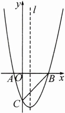 4. 如图,抛物线$y = x^2 + bx + c$经过点$(-2,5)$和$(2,-3)$,与两坐标轴的交点分别为$A$,$B$,$C$,它的对称轴为直线$l$。