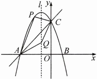 9. 如图,抛物线$y = -x^2 - 2x + 3$与$x$轴交于点$A$,$B$,与$y$轴交于点$C$,点$Q$是抛物线的对称轴$l$上的一个动点,在抛物线上是否存在点$P$,使得以点$A$,$P$,$C$,$Q$为顶点的四边形是平行四边形?若存在,求出所有符合条件的点$P$的坐标;若不存在,说明理由。