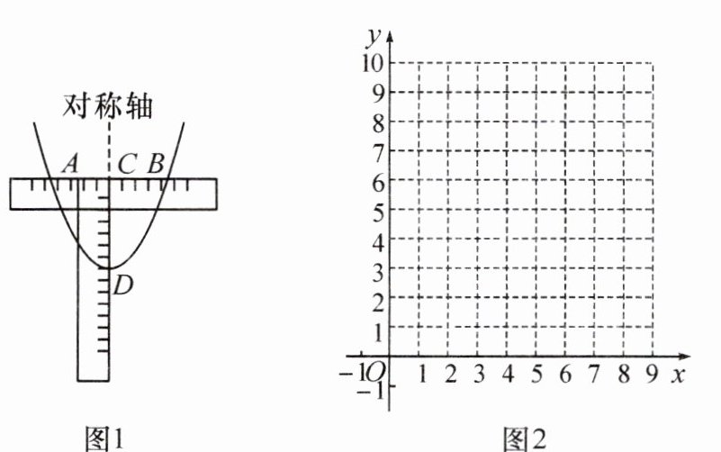 新考向 综合与实践(2024·南宁新民中学期中)在综合实践课上,数学探究小组用两个互相垂直的直尺制作了一个“T”形尺,并用它对二次函数图象的相关性质进行研究.把“T”形尺按如图1所示的方式摆放,水平宽AB的中点为C,图象的顶点为D,测得当AB=m cm时,CD=n cm.