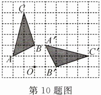 10. 在如图所示的方格纸中,△ABC的顶点都在格点上,将△ABC绕点O按顺时针方向旋转得到△A′B′C′,使各顶点仍在格点上,则其旋转角的度数是