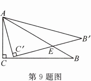 9. 如图,在△ABC中,∠C=90°,∠B=30°,AB=6,将△ABC绕点A逆时针旋转15°得到△AB′C′,B′C′交AB于点E,则B′E=