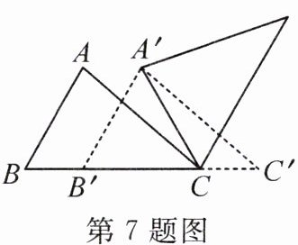 7. 如图,在△ABC 中,AB=6,BC=9,∠B=60°,将△ABC 沿射线 BC 的方向平移得到△A′B′C′,再将△A′B′C′绕点 A′逆时针旋转一定角度后,点 B′恰好与点 C 重合,则平移的距离为