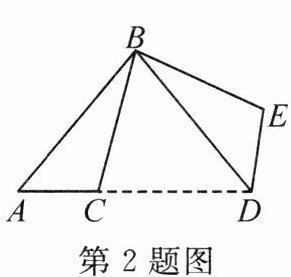 2. (2024·玉林期中)如图,在△ABC 中,∠A=50°,将△ABC 绕点 B 逆时针旋转,得到△DBE,点 D 恰好落在 AC 的延长线上,则旋转角的度数是(