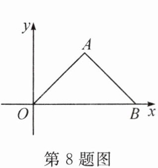 8. 若将等腰直角三角形$AOB$按如图所示的方式放置,$OB=2$,则点$A$关于原点对称的点的坐标为