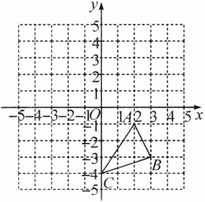 10. (教材九上P70习题T3变式)如图,在平面直角坐标系中,$\triangle ABC$三个顶点的坐标分别为$A(2,-1)$,$B(3,-3)$,$C(0,-4)$。