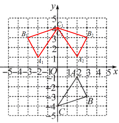(2)画出$\triangle A_{1}B_{1}C_{1}$关于$y$轴对称的$\triangle A_{2}B_{2}C_{2}$。