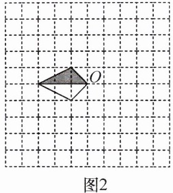 (2)图2是某设计师设计图案的一部分,请你运用旋转变换的方法,在方格纸中将图形绕点O顺时针依次旋转90°,180°,270°,依次画出旋转后所得到的图形,你会得到一个美丽的图案,但涂阴影时不要涂错了位置,否则不会出现理想的效果,你来试一试吧!