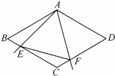 4. 如图,在菱形 ABCD 中,AB = 4,∠BAD = 120°,以点 A 为顶点的一个 60°的∠EAF 绕点 A 旋转,∠EAF 的两边分别交 BC,CD 于点 E,F,且点 E,F 不与点 B,C,D 重合,连接 EF.