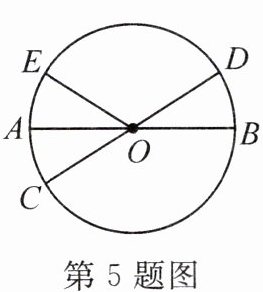 5. 如图,AB,CD是⊙O的直径,$\overset{\frown}{AE}$=$\overset{\frown}{BD}$。若∠AOE=32°,则∠COE的度数是
