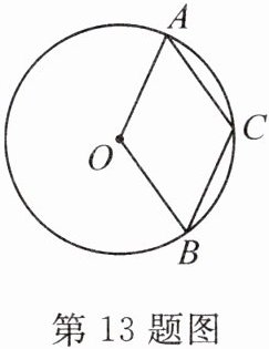 13. (教材九上P90习题T13变式)如图,A,B是半径为3的⊙O上的两点。若∠AOB=120°,C是$\overset{\frown}{AB}$的中点,则四边形AOBC的周长等于