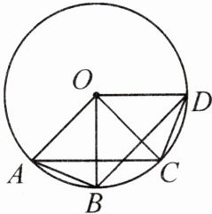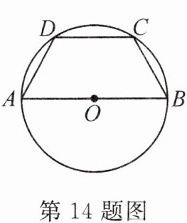 14. (2023·广西大学附中月考)如图,AB是⊙O的直径,四边形ABCD内接于⊙O。若BC=CD=DA=4cm,则⊙O的直径AB=