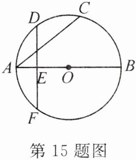 15. 如图,AB为⊙O的直径,D是$\overset{\frown}{AC}$的中点,过点D作DE⊥AB于点E,延长DE交⊙O于点F。若AC=12,AE=3,则⊙O的直径为